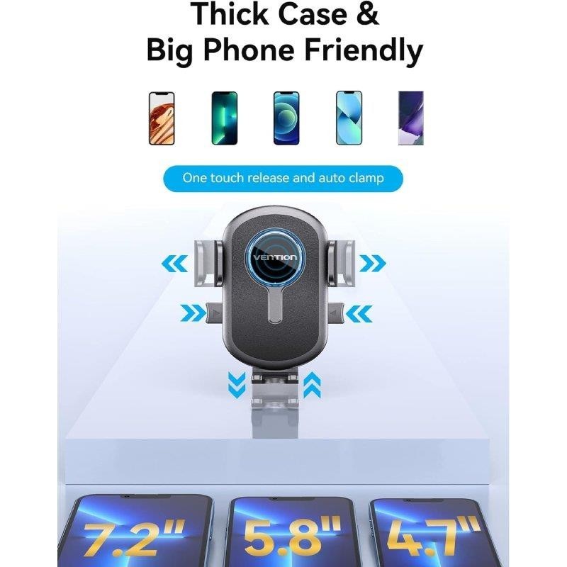 El soporte para teléfono VENTION no solo es compatible con todos los teléfonos móviles y dispositivos electrónicos de 4.7 a 7.2 pulgadas, sino que también cuenta con un sistema de liberación de botón para bloquear o desbloquear tu teléfono con una sola mano. Conduce con seguridad y comodidad.