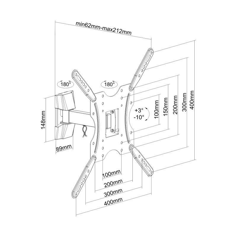 Distancia de la pared: ajustable entre 62 y 212mm (depende de la instalación y del espacio disponible) Especificaciones: