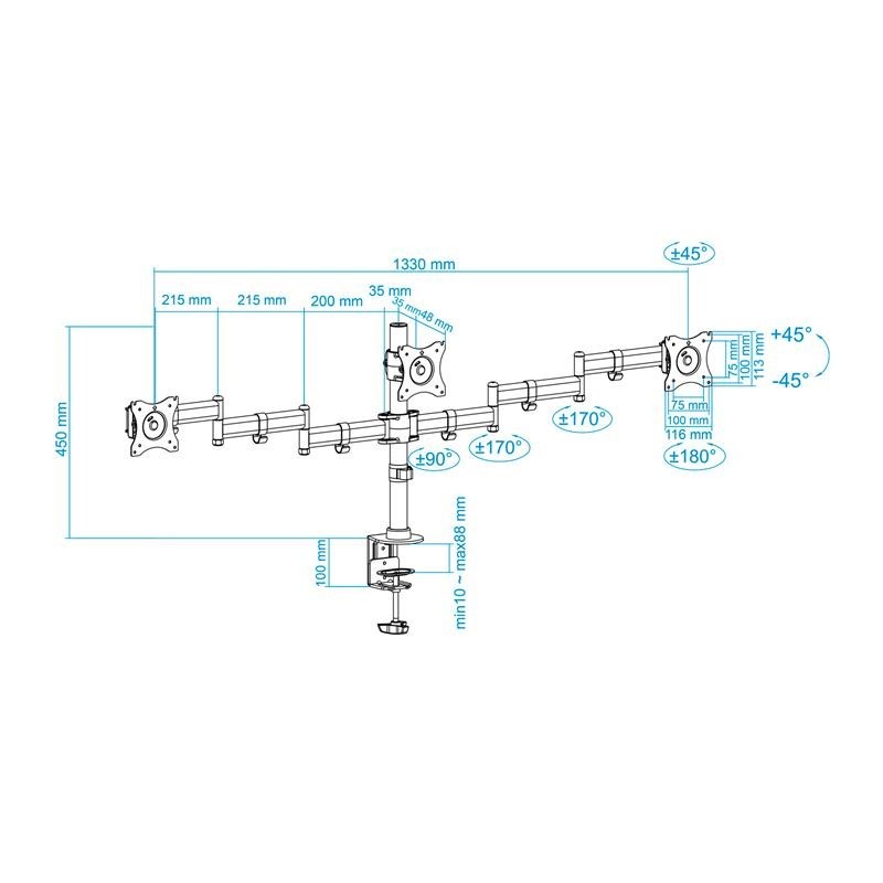 SOPORTE DE MESA TV/MONITOR TOOQ 13-27 8KG 2 BRAZOS PARA 3 PANTALLAS