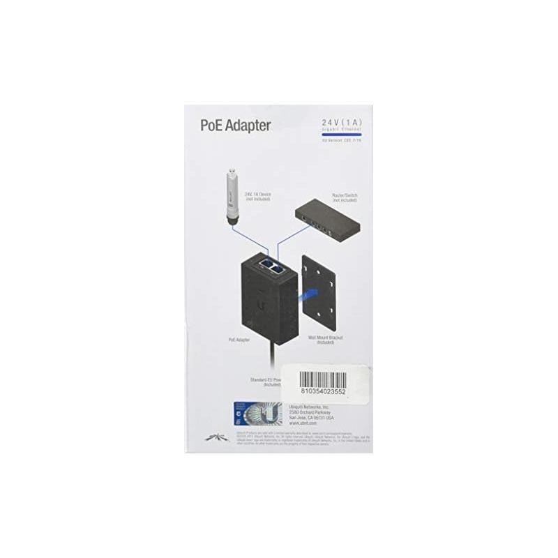 Ubiquiti Networks POE-24-24W-G es un adaptador Gigabit PoE diseñado para suministrar equipos alimentados con 24V hasta 1A (RouterBoard, Alix, WispStation, Bullet y otros). Ideal para alimentar estaciones cliente y estaciones base de CPE. El adaptador tiene una fuente de alimentación LED.