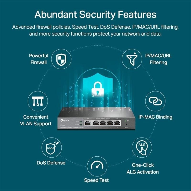 Router VPN de la prestigiosa marca TP-Link modelo ER605 (TL-R605) integrado en Omada SDN para la administración centralizada en la nube y el monitoreo inteligente. Este router facilita el acceso a la nube y la aplicación Omada para una comodidad y fácil gestión del sistema.