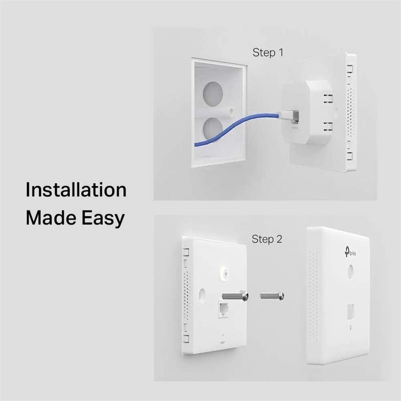 Punto de Acceso Inalámbrico N 300Mbps de Pared EAP115-Wall de TP-Link. Fácil montaje que permite la instalación en cualquier caja de pared estándar de tipo UE.