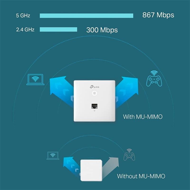 Punto de acceso inalámbrico de pared TP-Link EAP230-Wall, diseño delgado sin precedentes con 11 mm. MIMO multiusuario de doble banda simultánea. Compatible con PoE 802.3af/802.3at.