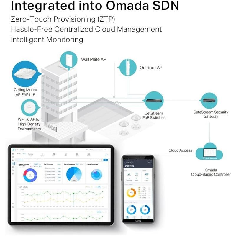 Integrado en Omada SDN: Zero-Touch Provisioning (ZTP) ?, Administración centralizada de la nube y Monitorización inteligente.