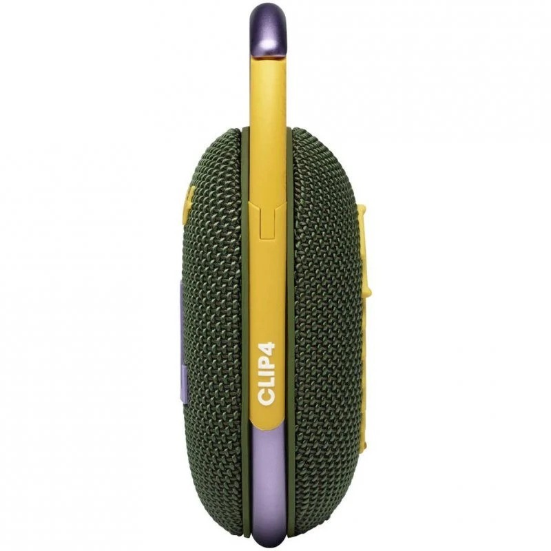 El vibrante y fresco JBL Clip 4 ofrece un sonido JBL Original Pro Sound sorprendentemente rico en un paquete compacto. La forma ovalada única se adapta fácilmente a tu mano. Totalmente envuelto en telas de colores con detalles expresivos inspirados en la moda callejera actual, es fácil combinar con tu estilo.