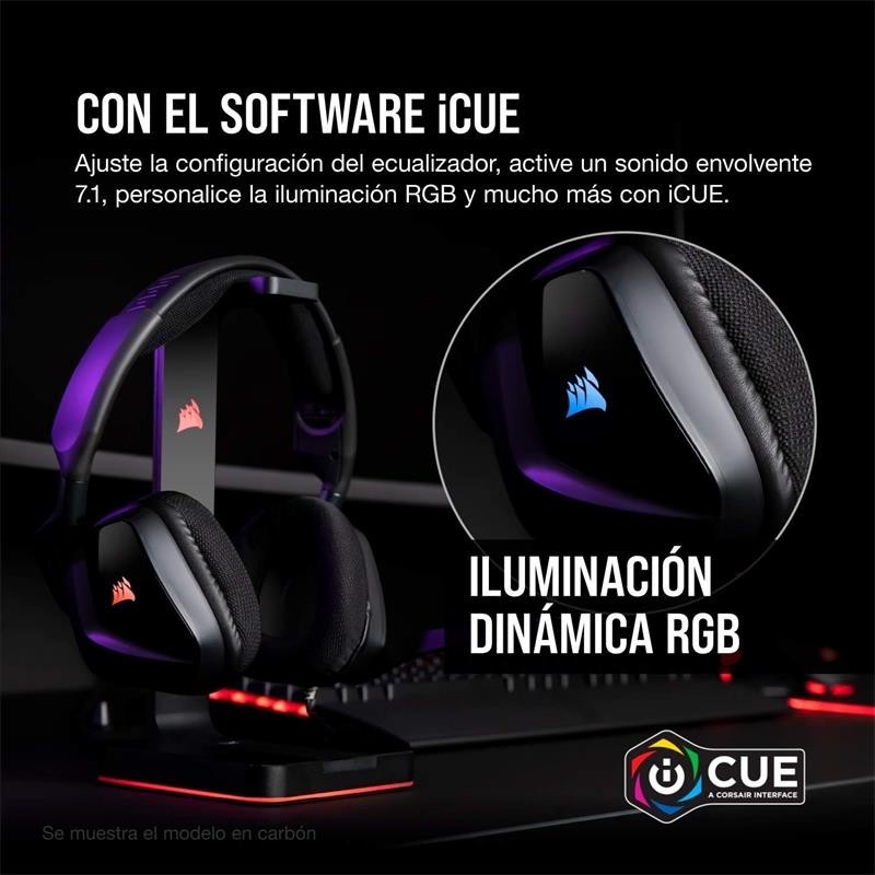 Control inteligente, posibilidades ilimitadas. El software CORSAIR iCUE permite personalizar los ajustes del ecualizador de sonido, disfrutar de un sonido envolvente e inmersivo 7.1, controlar el ruido local y sincronizar la iluminación RGB con periféricos, refrigeradores, ventiladores y otros productos de CORSAIR compatibles.