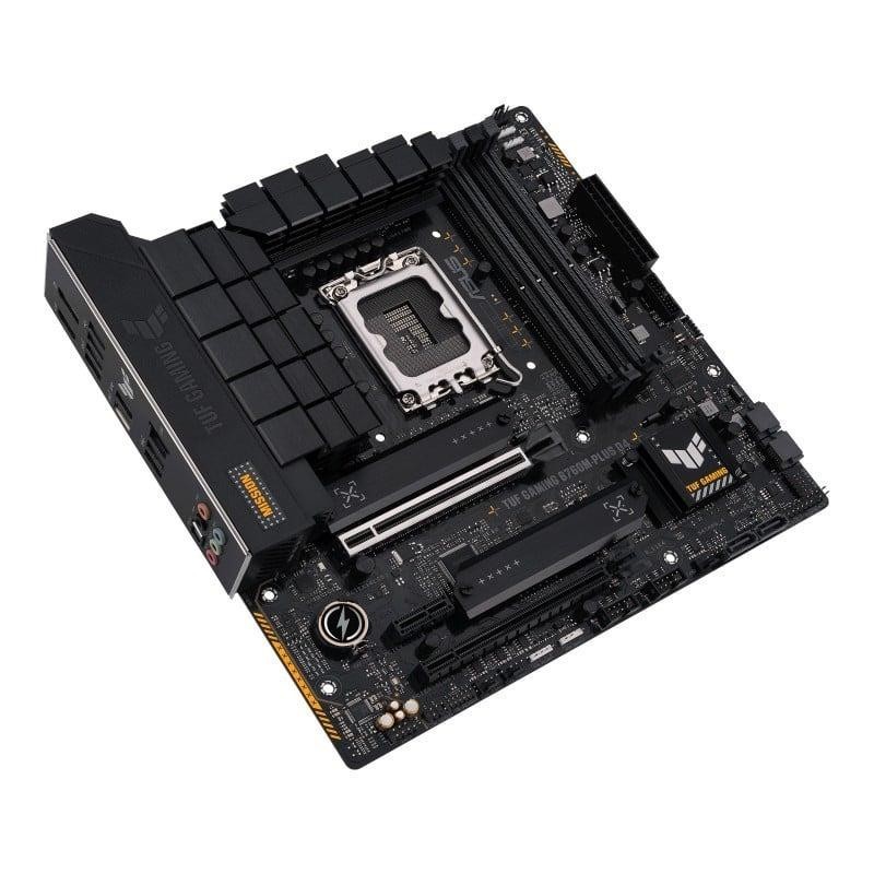 La ASUS TUF GAMING B760M-PLUS D4 es una placa base micro-ATX diseñada para ofrecer un rendimiento sólido y duradero en juegos. Compatible con procesadores Intel de 12.ª y 13.ª generación en socket LGA1700, admite hasta 128 GB de memoria DDR4 en cuatro ranuras DIMM. Cuenta con una ranura PCIe 5.0 x16 y dos PCIe 3.0 x1 para tarjetas gráficas y otros dispositivos de expansión.