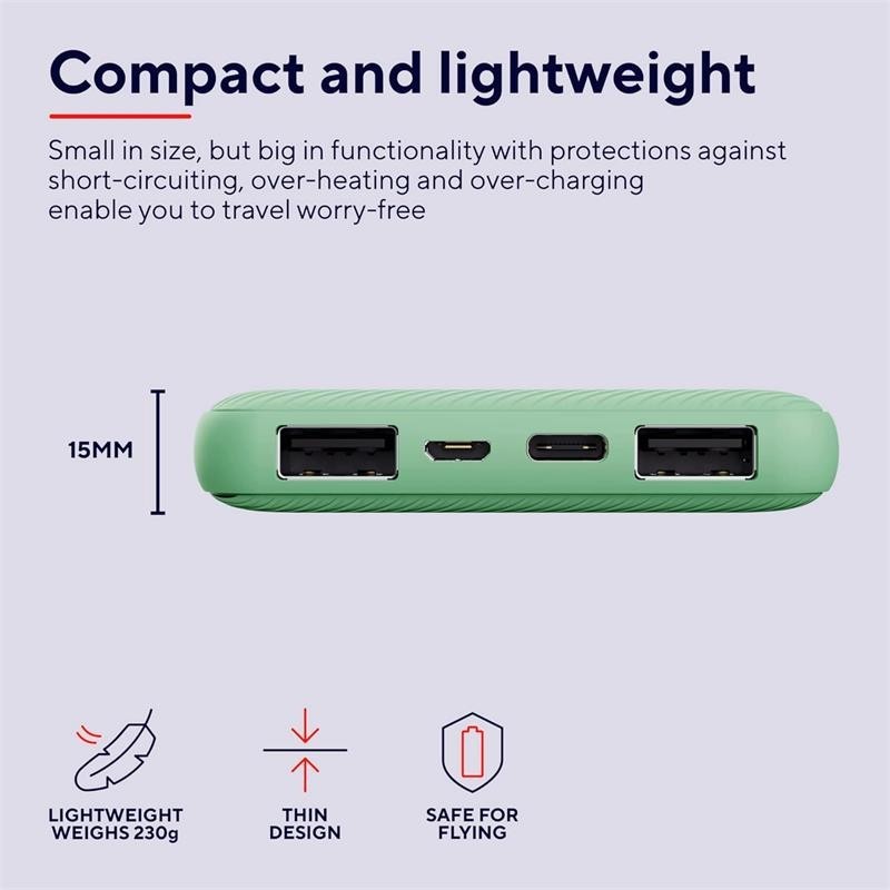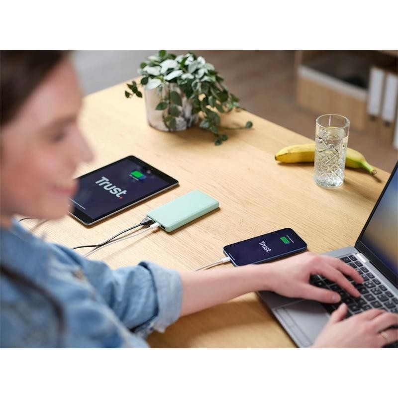 POWERBANK TRUST PRIMO SLIM 10000MAH X2 USB-A + USB-C + MICRO-USB ECO GREEN