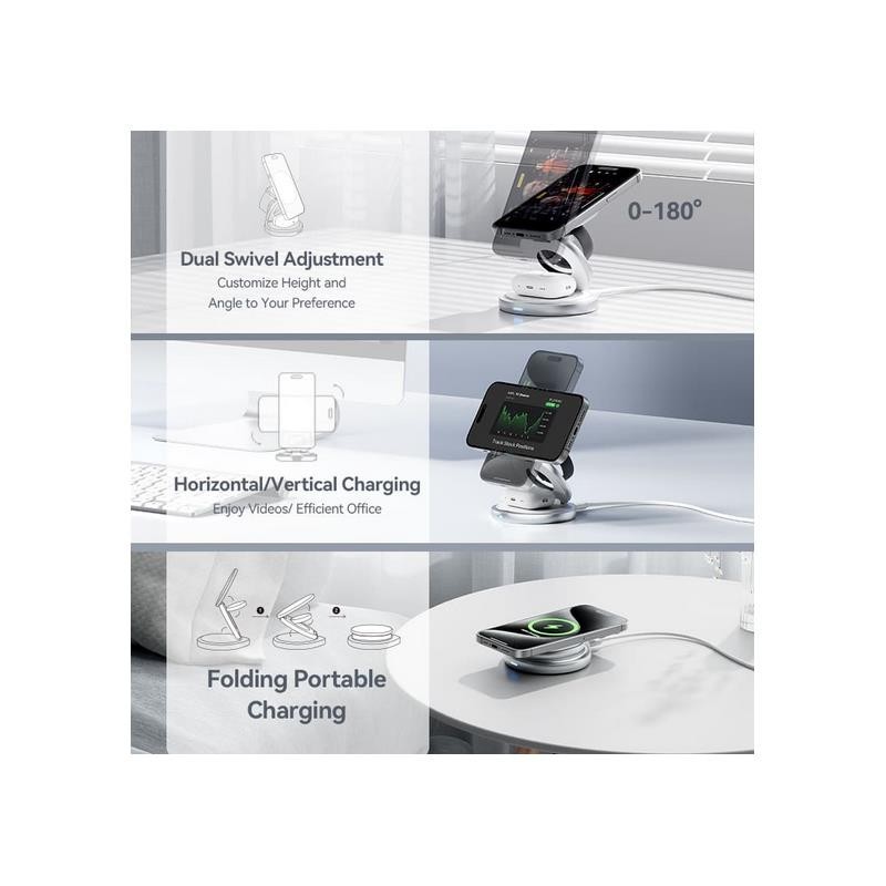 Potencia de carga: Ofrece una salida máxima de 15W para el iPhone, 2.5W para el Apple Watch y 3W para los AirPods.