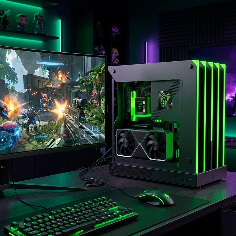 BLADE es una edición limitada que fusiona estética industrial y diseño gaming para un look brutal y exclusivo; su diseño open-air maximiza el flujo de aire y luce tus componentes desde cualquier ángulo, la iluminación RGB tipo garra aporta un impacto visual potente con un acabado metálico de gran precisión, y está preparada para montajes premium con GPU en vertical y un panel de conexiones moderno con USB-C.