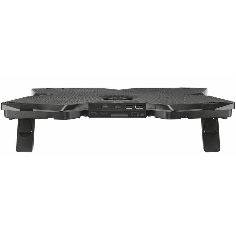 El Trust Gaming GXT 278 está equipado con cuatro ventiladores de 120 mm para enfriar su portátil. Además de cuidar sus componentes técnicos, este modelo tiene una altura regulable y una retroiluminación roja. La velocidad de los ventiladores también es ajustable.