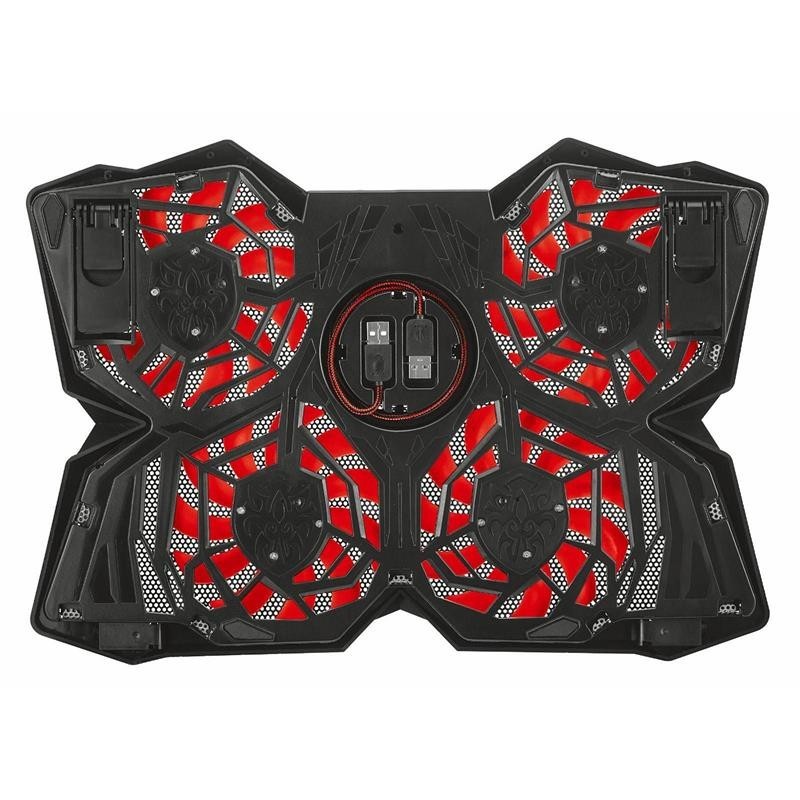 El Trust Gaming GXT 278 está equipado con cuatro ventiladores de 120 mm para enfriar su portátil. Además de cuidar sus componentes técnicos, este modelo tiene una altura regulable y una retroiluminación roja. La velocidad de los ventiladores también es ajustable para decidir qué tratamiento aplicar a su máquina de acuerdo a sus necesidades. El soporte GXT 278 está alimentado por USB y su cable encaja cómodamente debajo del dispositivo.