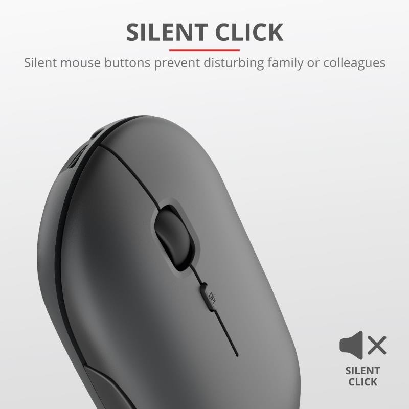 A nadie le gusta molestar a sus colegas cuando se tiene mucho trabajo. Por ello, el Puck de Trust está equipado con botones silenciosos que reducen los molestos sonidos de los clics en un 90 % en comparación con otros ratones. Y hablando de botones, el interruptor de ppp integrado permite alternar fácilmente entre diferentes velocidades. Si a esto le suma la práctica rueda de desplazamiento, ya tiene todo cuanto necesita para realizar su trabajo.