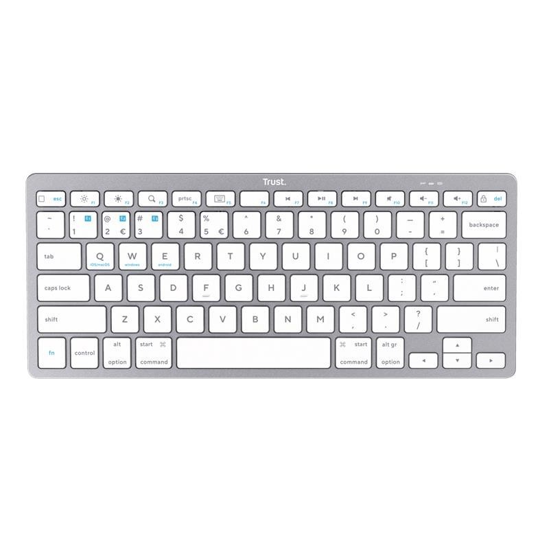 - Sistema operativo Windows soportado: Windows 10, 8,1 o 7 - Sistema operativo MAC soportado: basado en Intel con Mac OS X 10.15 (El Capitan) o superior - Peso: 293 g - Alimentación: Batería - Tipo de batería: AAA - Numero de baterías soportadas: 2 - Uso recomendado: Juego - Interfaz del dispositivo: Bluetooth - Teclado numérico: No - Teclado, cantidad de teclas: 85 - Versión de Bluetooth: 4.0 - Número de productos incluidos: 1 pieza(s) - Estilo de teclado: Derecho - Color del producto: Plata - Retroiluminación: No - Descansa muñecas: No