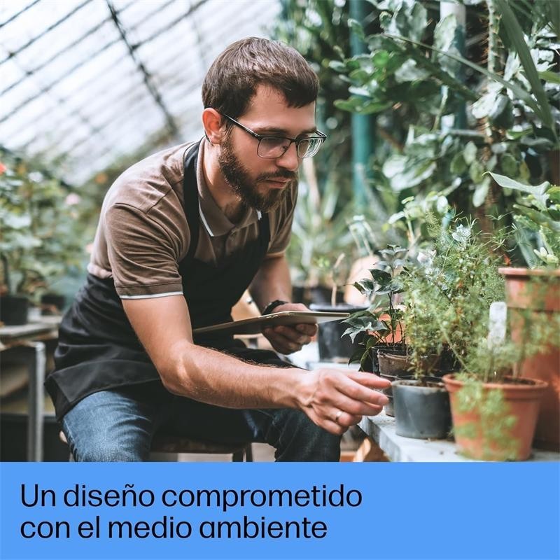Materiales y tecnologías sostenibles: Producto de impresión sostenible con HP+; Reciclable a través de HP Planet Partners; Compatible con los accesorios de accesibilidad; Contiene plástico reciclado posconsumo