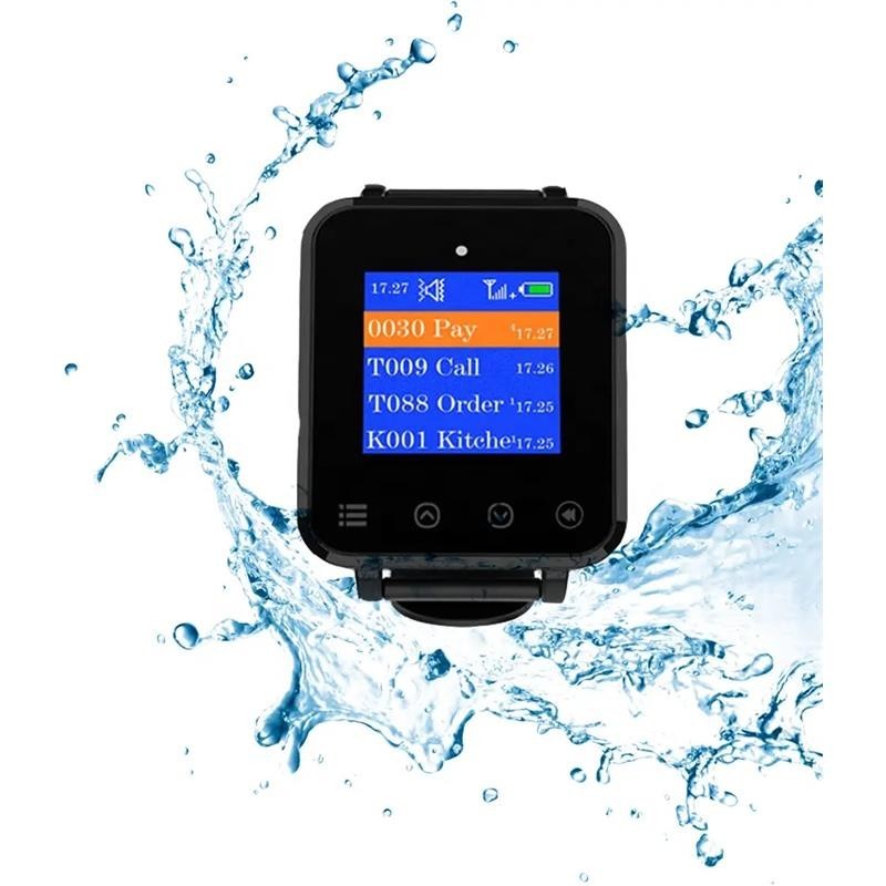 Nuestro W01 cuenta con una pantalla que muestra hasta 4 grupos de mensajes simultáneamente. Además, es resistente al agua, lo que lo hace ideal para el entorno de un restaurante.