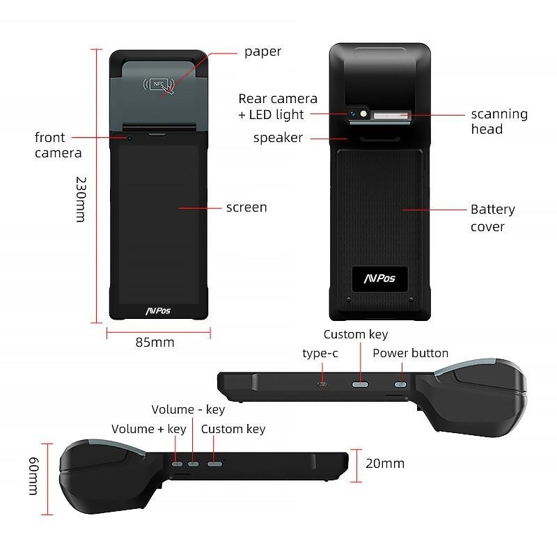 PDA TC600 es un dispositivo todo en uno con pantalla de 6", procesador octa-core, 4GB de RAM y 128GB de almacenamiento, ideal para escaneo e impresión térmica. Ofrece conectividad 4G, WiFi y Bluetooth, y una batería de larga duración de 2800mAh. Perfecto para gestionar datos, imprimir recibos y etiquetas de manera eficiente.